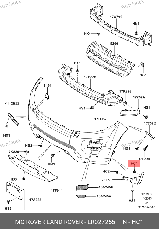 LR027255 LAND ROVER lr027255 land rover клипса молдинга арки колеса синие