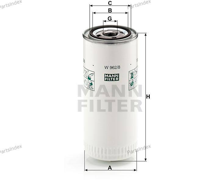 W 962-8 MANN FILTER Фильтр масляный (P553771)