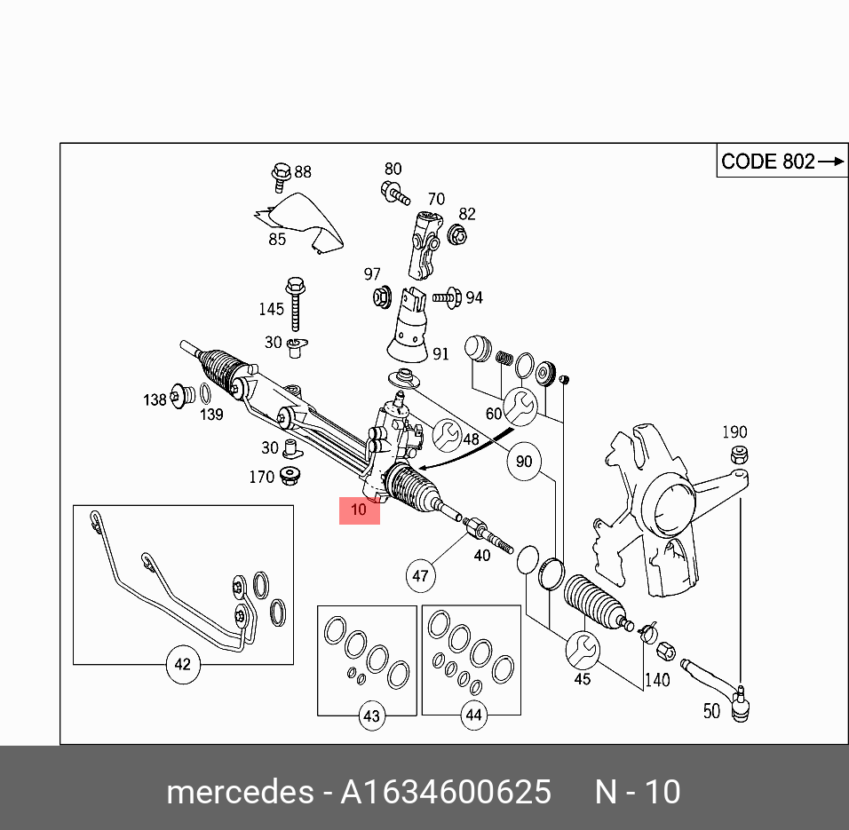 A 163 460 06 25 MERCEDES BENZ Рулевая рейка с тягами гидравлическая r22791nw