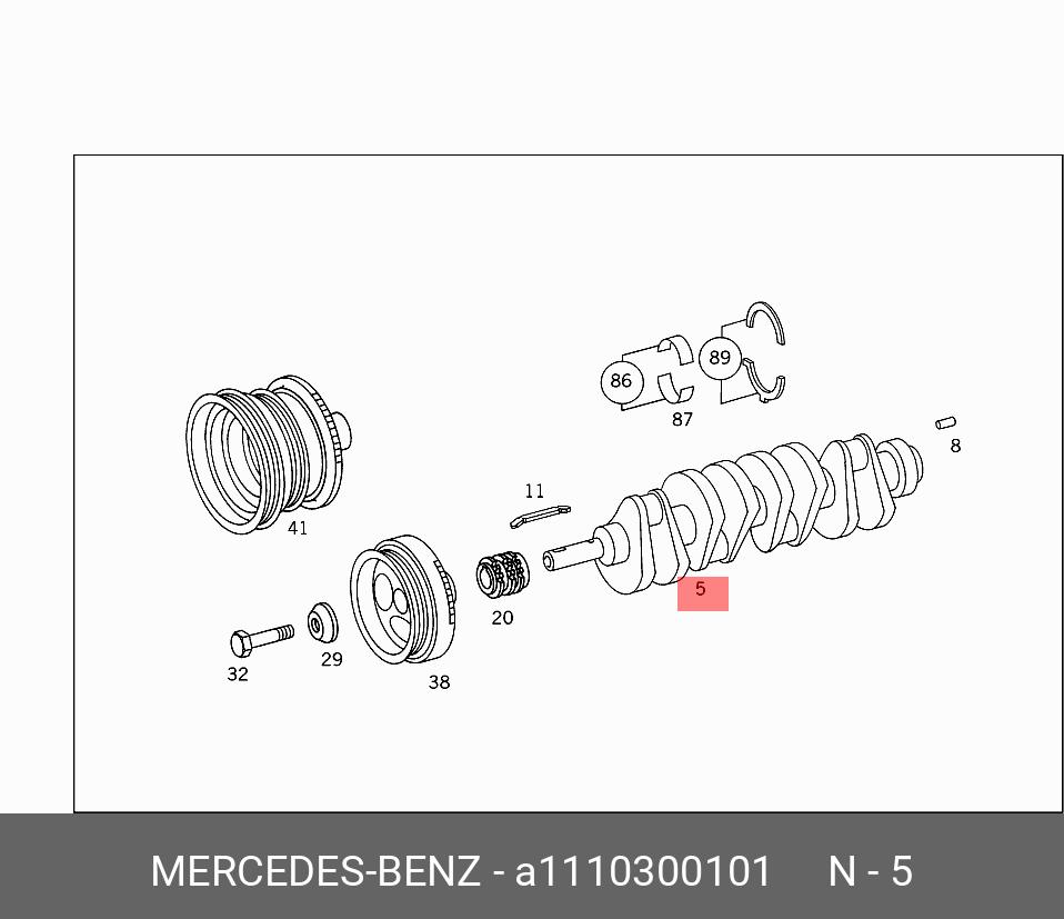 A1110300101 MERCEDES BENZ Вал коленчатый шлифованный MB M111.960 2.2L кор - 0.25, шат - 0.25 восстановленн
