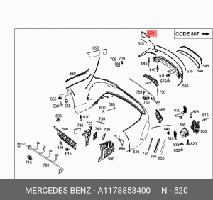 A 117 885 34 00 MERCEDES BENZ mercedes-benz a1178853400 заглушка бампера заднего