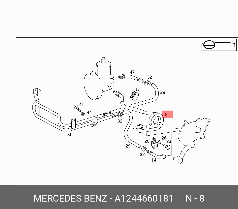 A 124 466 01 81 MERCEDES BENZ Напорный шланг от насоса к рейке hph0503