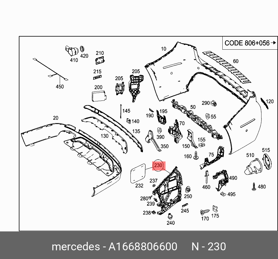 | Название | a1668806600 mercedes-benz кронштейн бампера заднего |