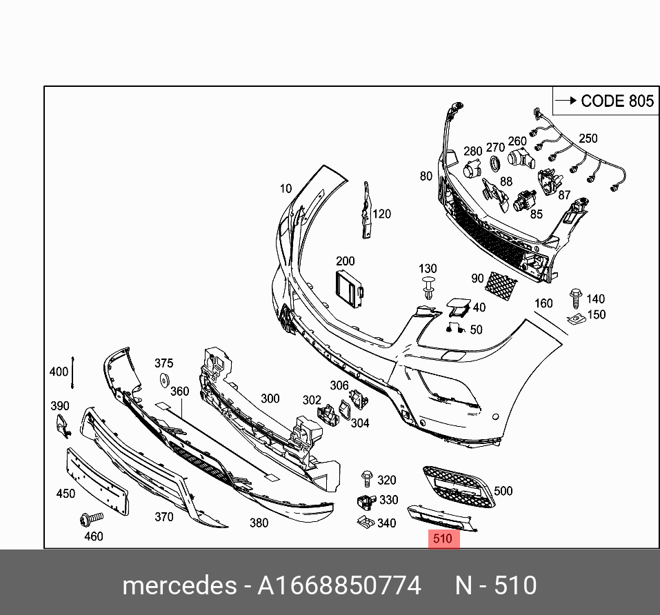 A1668850774 MERCEDES BENZ mercedes-benz a1668850774 молдинг бампера