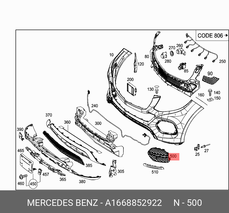 A1668852922 MERCEDES BENZ mercedes-benz a1668852922 заглушка бампера