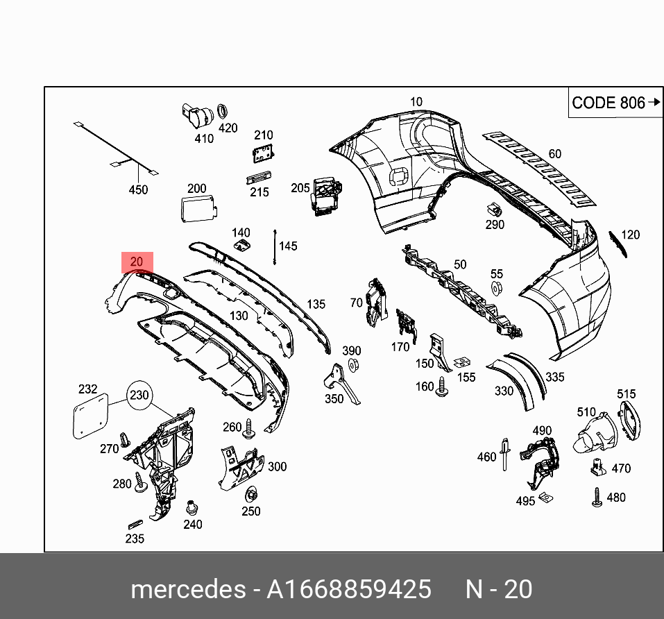 A1668859425 MERCEDES BENZ mercedes-benz a1668859425 панель бампера заднего