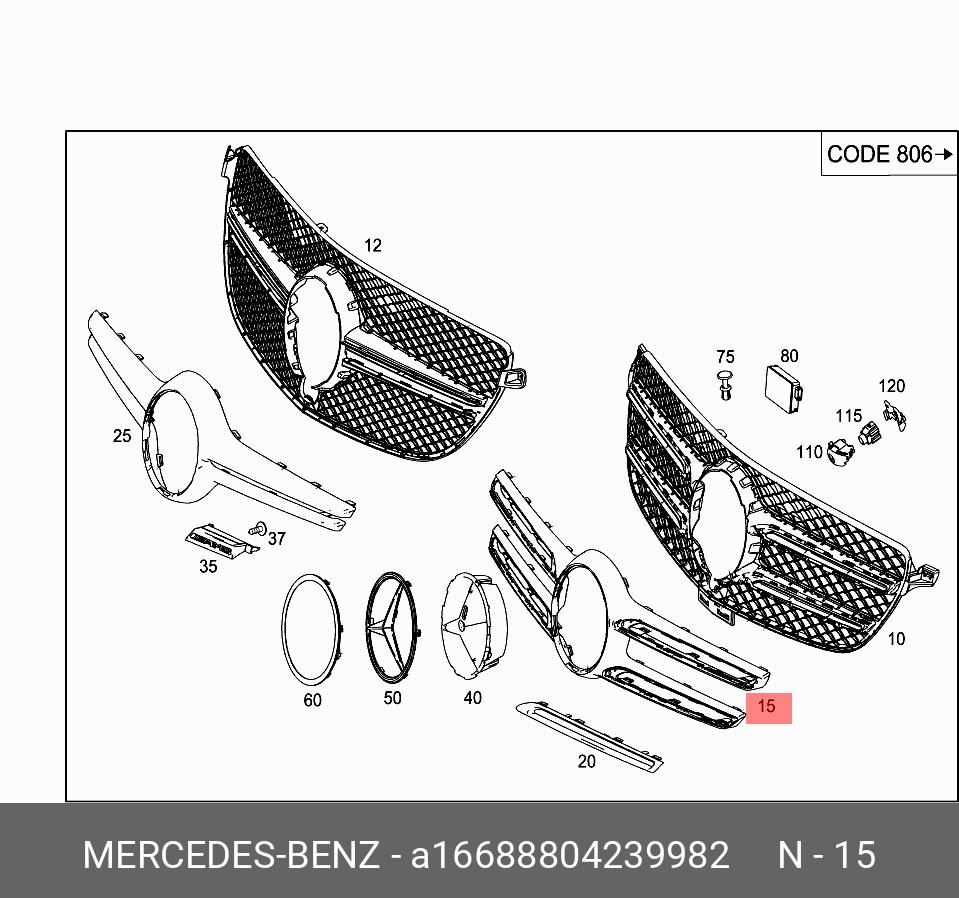 A 166 888 04 23 9982 MERCEDES BENZ a1668880423 9982 mercedes-benz накладка решетки радиатора