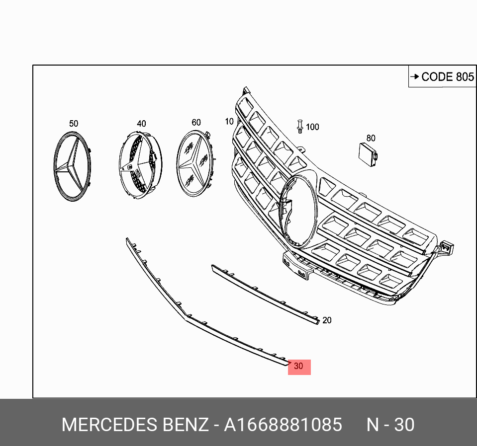 | Название | mercedes-benz a1668881085 молдинг |