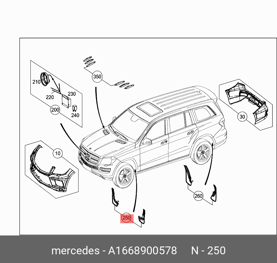 | Название | mercedes-benz a1668900578 комплект брызговиков передних |