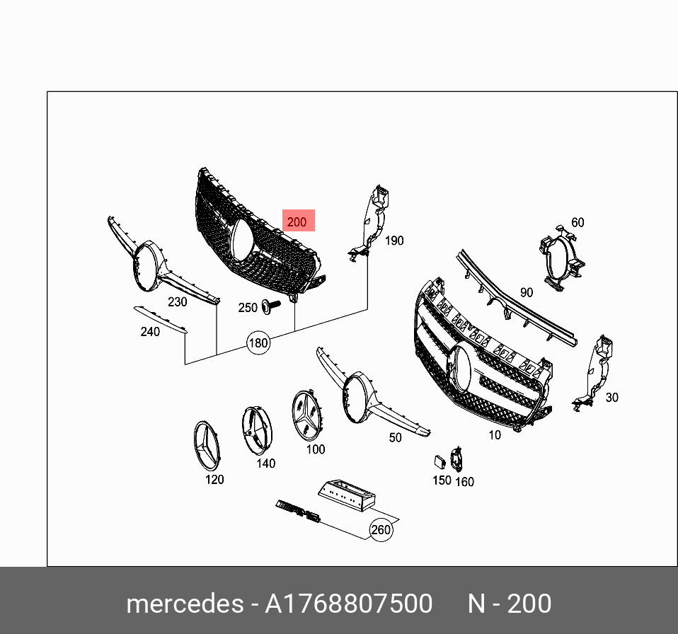 A 176 880 75 00 MERCEDES BENZ mercedes-benz a1768807500 решетка радиатора