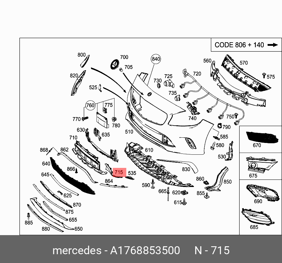 A1768853500 MERCEDES BENZ a1768853500 mercedes-benz накладка бампера переднего