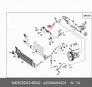 A 204 460 44 24 MERCEDES BENZ Напорный шланг от насоса к рейке hph0507