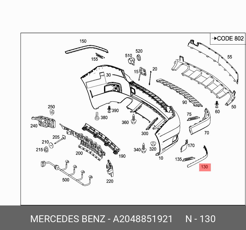 mercedes-benz a2048851921 молдинг бампера заднего