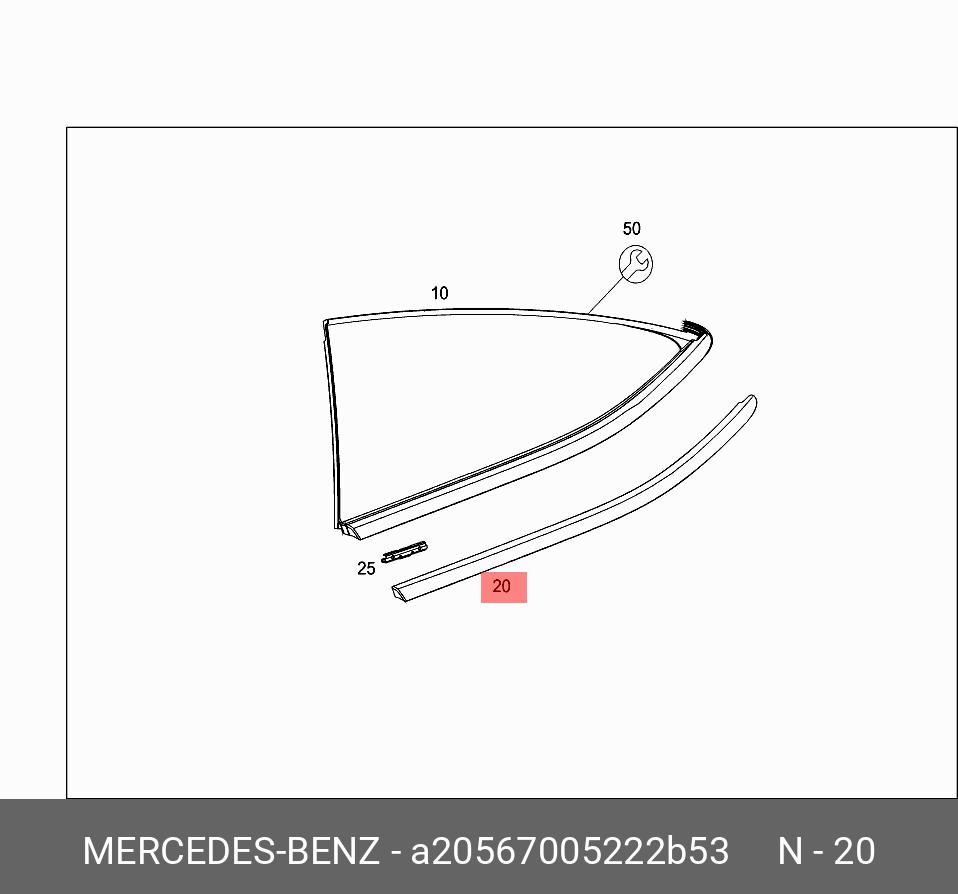 | Название | A2056700522 2B53 Mercedes-Benz НАКЛАДКА СТЕКЛА БОКОВОГО |