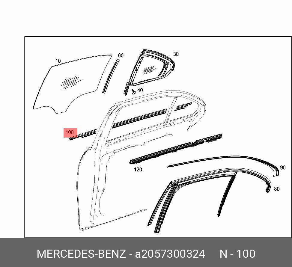 mercedes-benz a2057300324 уплотнение стекла двери
