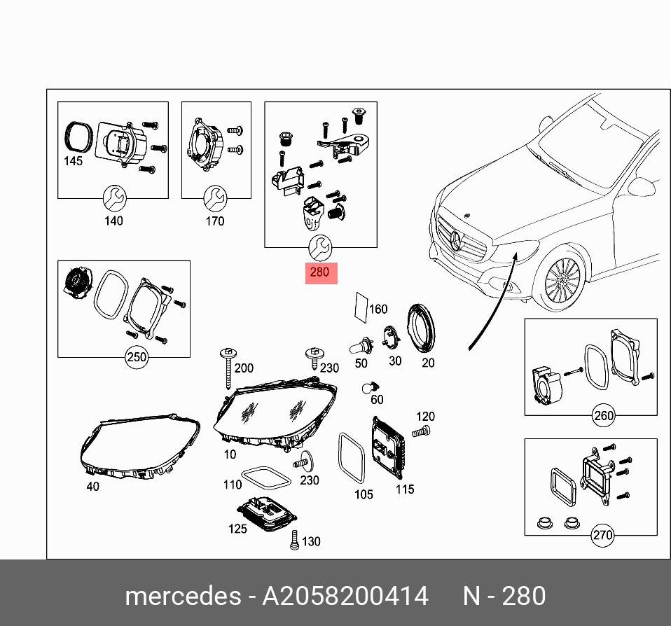 A 205 820 04 14 MERCEDES BENZ mercedes-benz a2058200414 комплект креплений фары