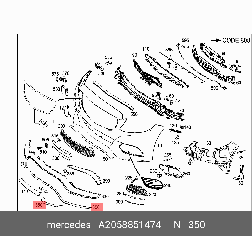 A2058851474 MERCEDES BENZ mercedes-benz a2058851474 накладка бампера переднего