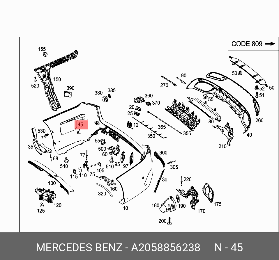 A2058856238 MERCEDES BENZ mercedes-benz a2058856238 накладка бампера заднего