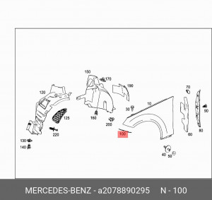 mercedes-benz a2078890295 прокладка крыла переднего