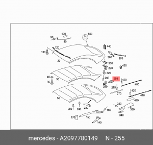 A 209 778 01 49 MERCEDES BENZ mercedes-benz a2097780149 направляющая крепления крыши складной