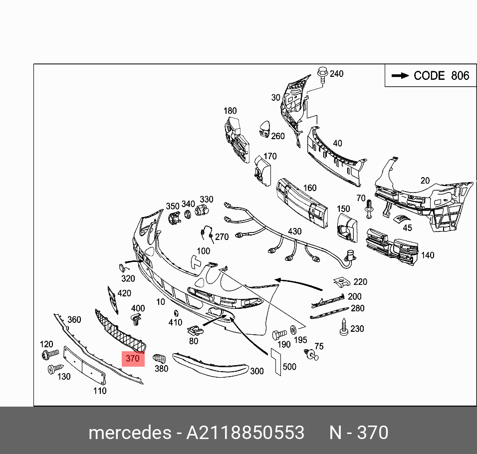 A 211 885 05 53 MERCEDES BENZ mercedes-benz a2118850553 решетка радиатора