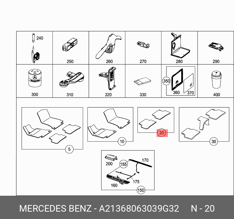 A 213 680 63 03 9G32 MERCEDES BENZ mercedes-benz a2136806303 9g32 комплект ковриков репс. зад.