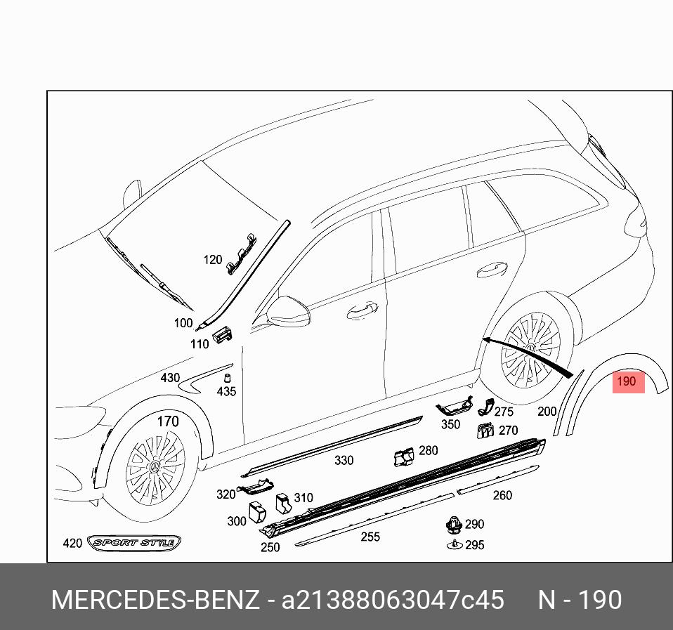 | Название | A2138806304 7C45 Mercedes-Benz НАКЛАДКА КРЫЛА ЗАДНЕГО |
