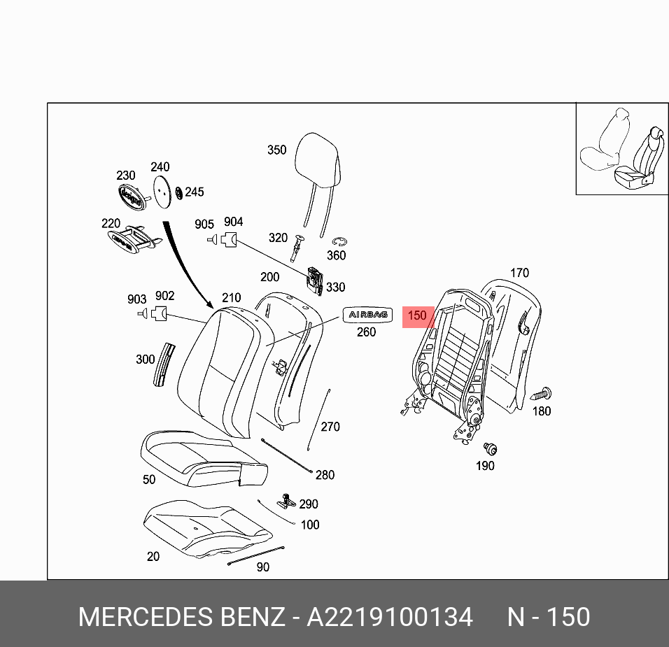 A2219100134 Mercedes-Benz СПИНКА СИДЕНЬЯ