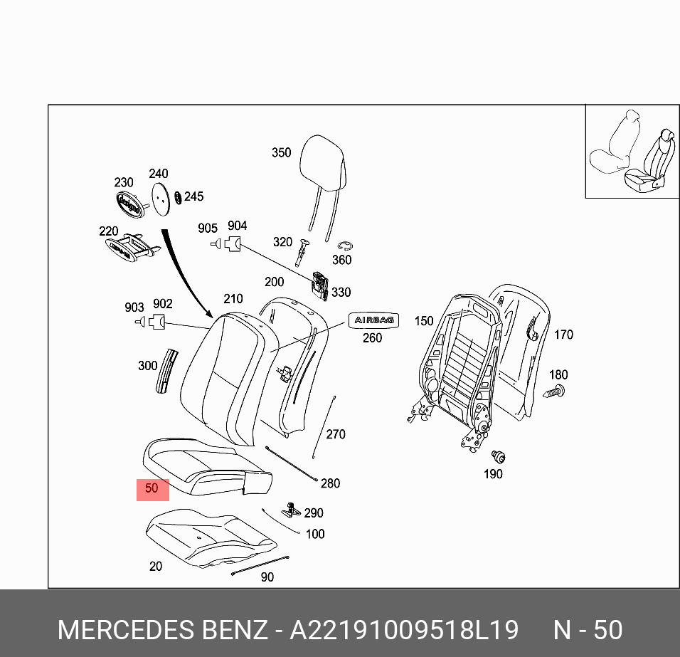 | Название | mercedes-benz a2219100951 8l19 обшивка сидения |