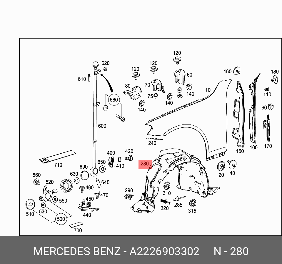 A 222 690 33 02 MERCEDES BENZ mercedes-benz a2226903302 накладка арки колесной