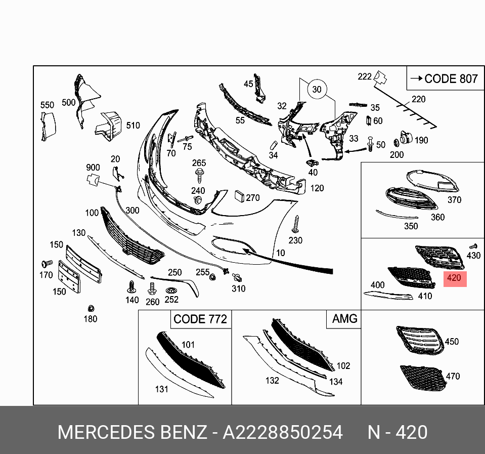 A 222 885 02 54 MERCEDES BENZ mercedes-benz a2228850254 накладка бампера