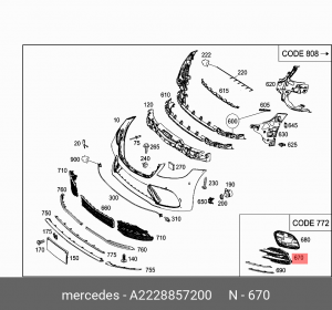A2228857200 MERCEDES BENZ mercedes-benz a2228857200 накладка бампера переднего