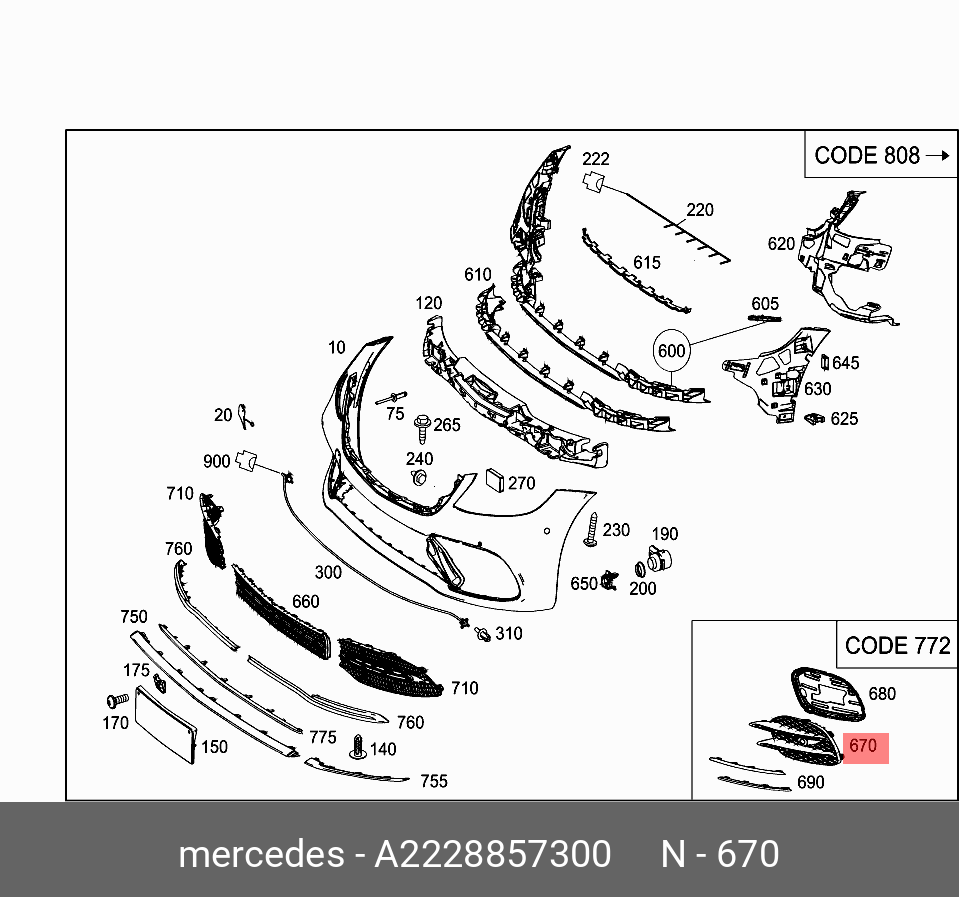 A2228857300 MERCEDES BENZ mercedes-benz a2228857300 накладка бампера переднего