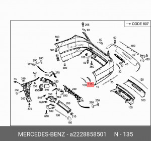 A2228858501 MERCEDES BENZ A2228858501 Mercedes-Benz ПРОСТАВКА БАМПЕРА ЗАДНЕГО
