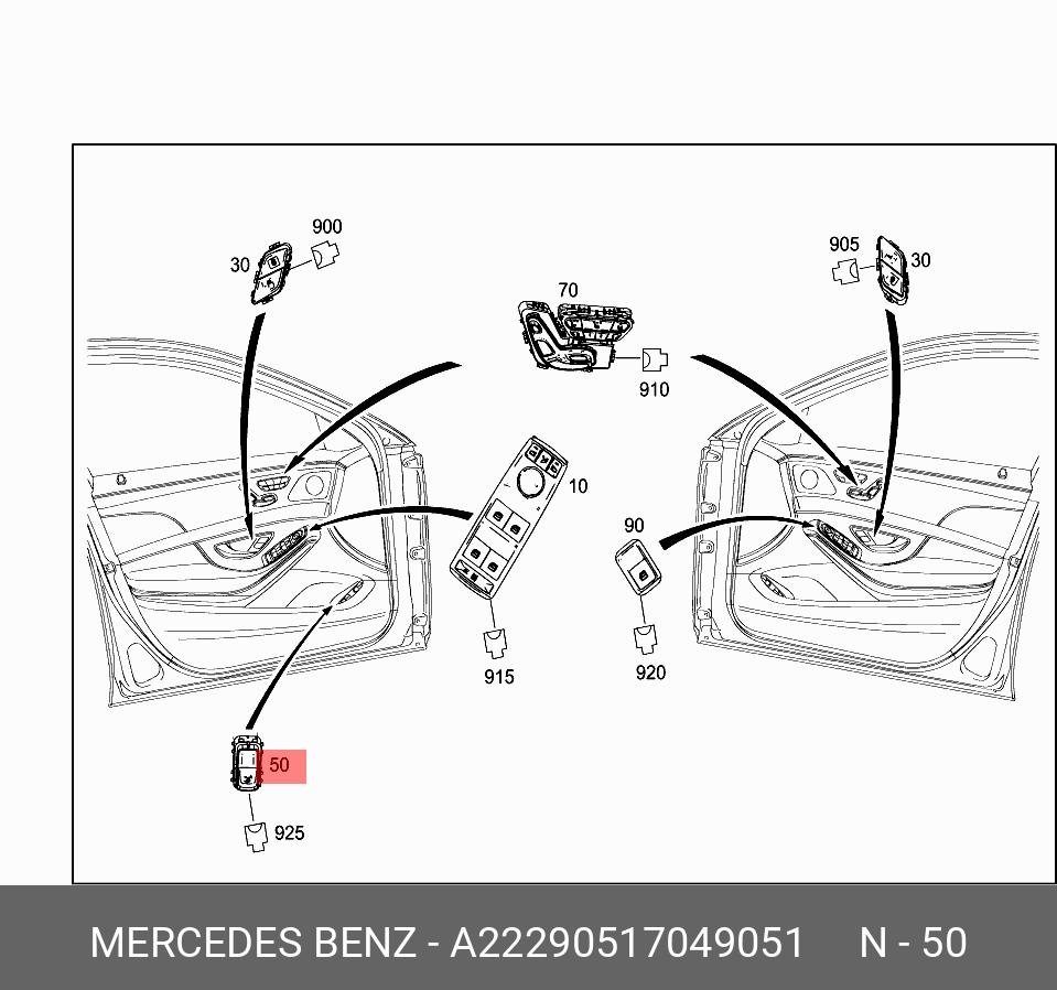 A 222 905 17 04 9051 MERCEDES BENZ a2229051704 9051 mercedes-benz переключатель кнопочный