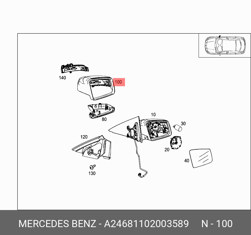 A 246 811 02 00 3589 MERCEDES BENZ mercedes-benz a2468110200 3589 корпус зеркала бокового