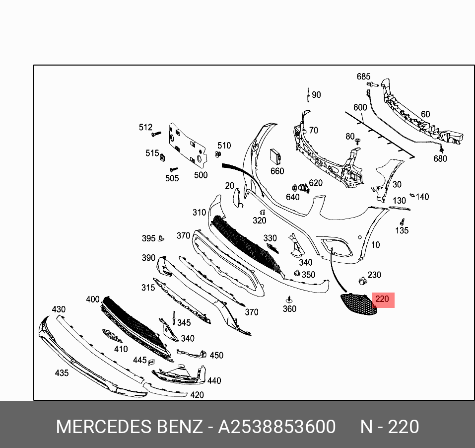 a2538853600 mercedes-benz накладка бампера переднего