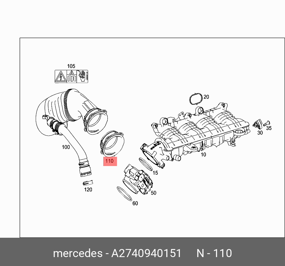 A 274 094 01 51 MERCEDES BENZ a2740940151 mercedes-benz кольцо крепления патрубка воздушного