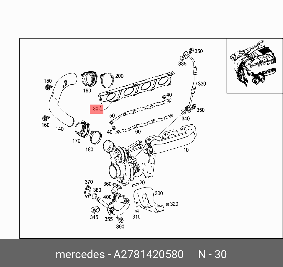 A 278 142 05 80 MERCEDES BENZ mercedes-benz a2781420580 прокладка турбонагнетател
