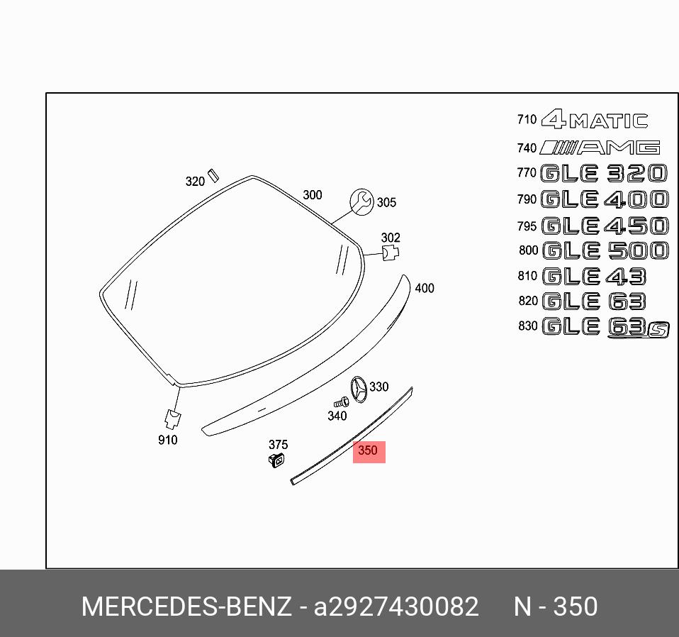 A 292 743 00 82 MERCEDES BENZ mercedes-benz a2927430082 накладка двери багажного отделения