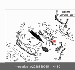 mercedes-benz a2928850965 опорный кронштейн середина
