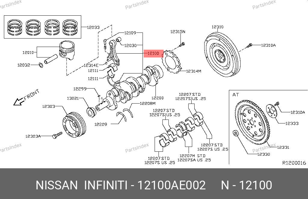 12100-AE002 NISSAN Шатун ECR1016 Nissan QR25-DE 121003TA0A