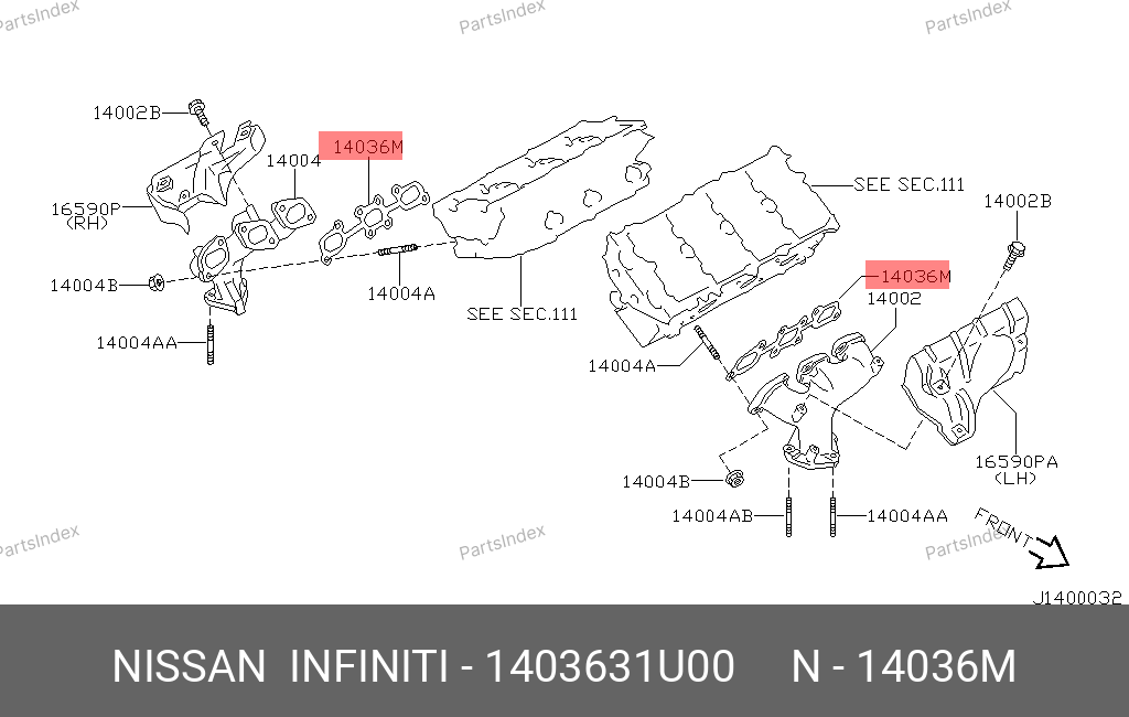 14036-31U00 NISSAN Прокладкавыпускногоколлектораметалл3сл.NissanVQ35DE/VQ40DE