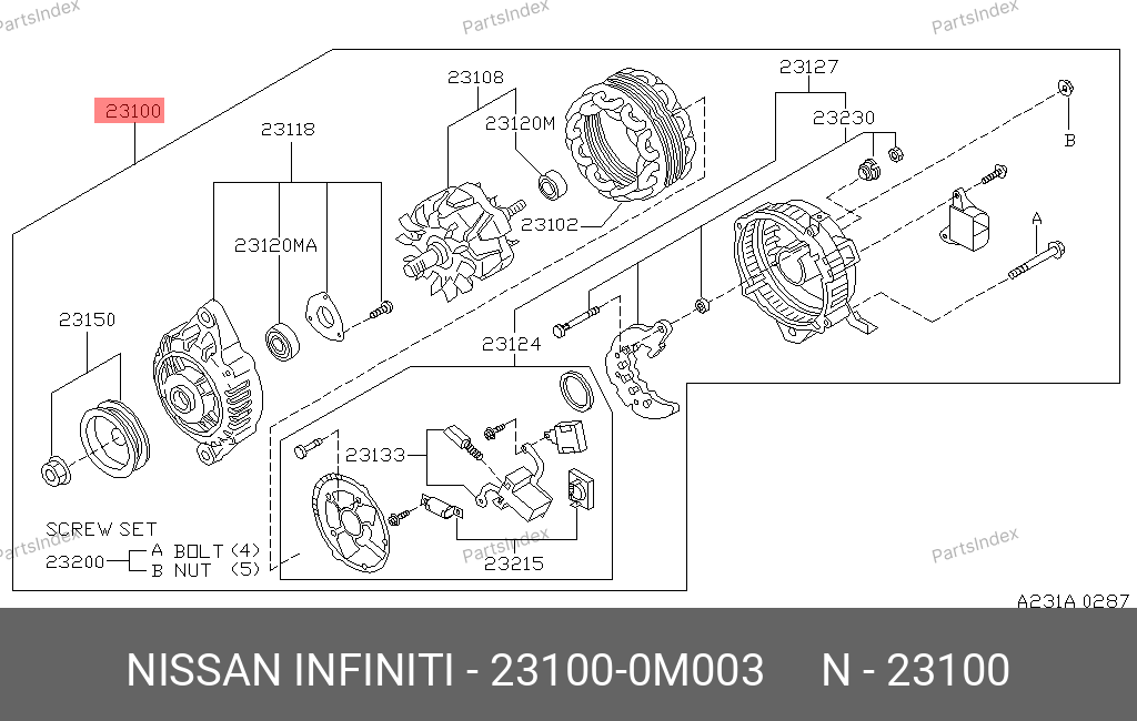 231000M003 NISSAN Генератор оригинальный восстановленный