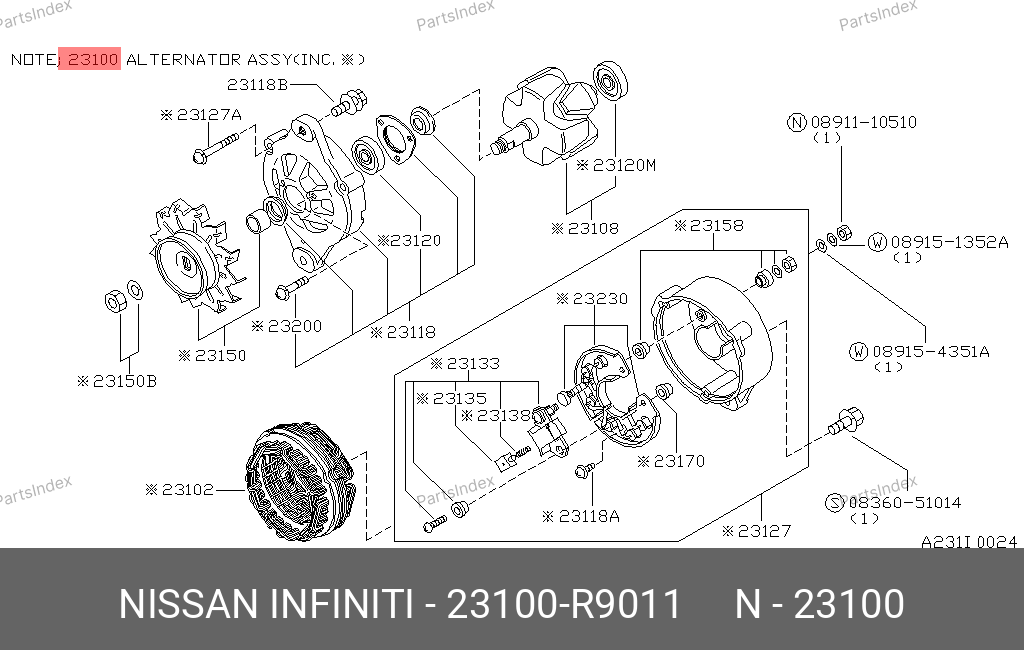 23100-R9011 NISSAN Генератор оригинальный восстановленный