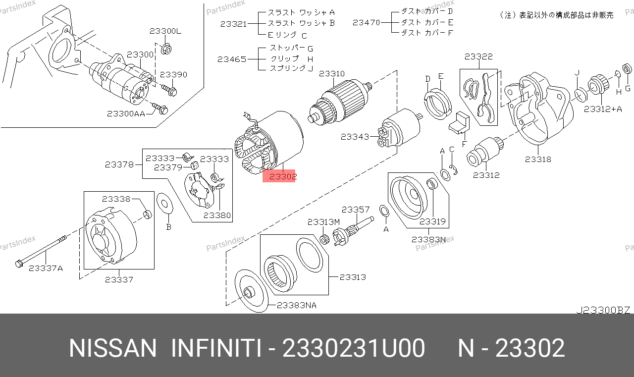 23302-31U00 NISSAN Статор стартера со стаканом