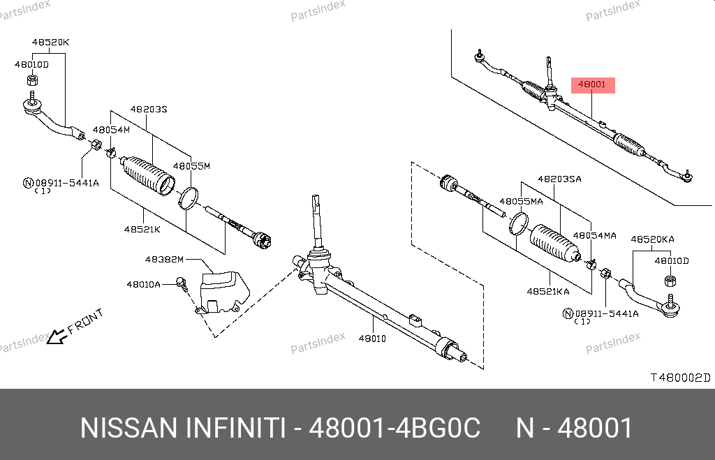 480014BG0C NISSAN Рулевая рейка с тягами механическая j50101nw