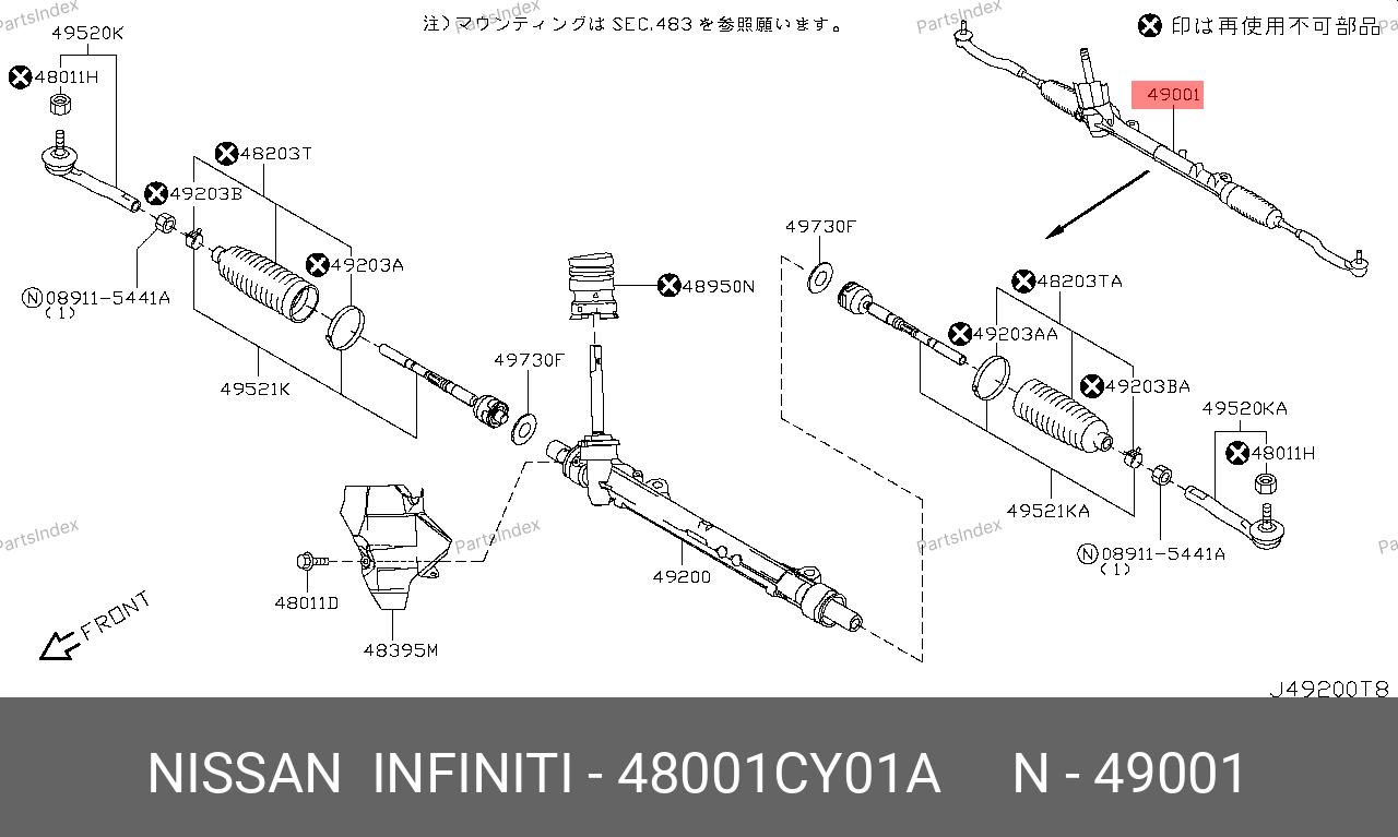 48001-CY01A NISSAN Рулевая рейка с тягами механическая j50361nw