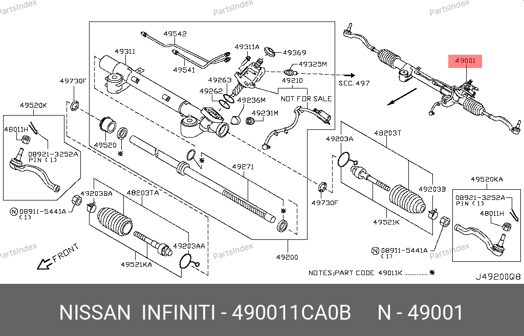 490011CA0B NISSAN Рулевая рейка без тяг гидравлическая r24082nw