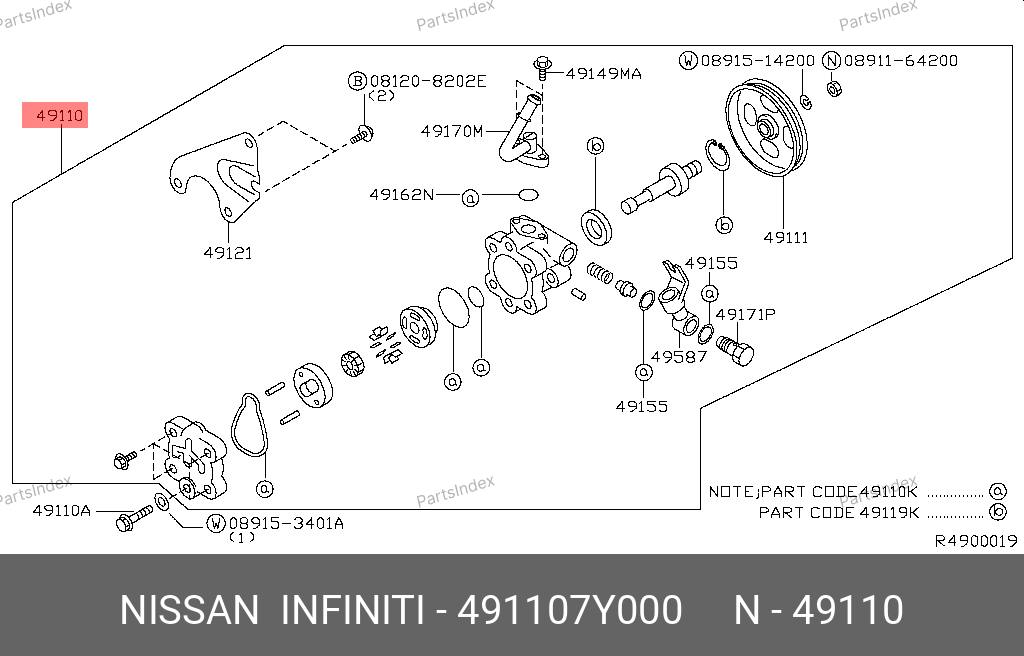 491107Y000 NISSAN Насос гидроусилителя руля p1103hg